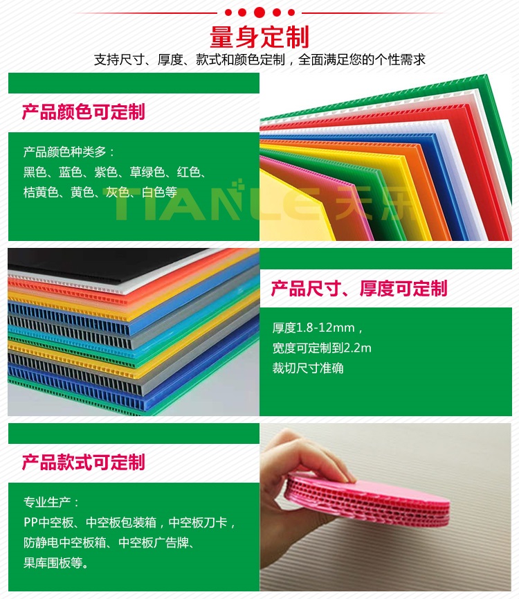 天樂塑業(yè)是一家集研發(fā),設(shè)計,制造,銷售為一體的塑料制品企業(yè),公司通過ISO質(zhì)量管理、環(huán)境管理、職業(yè)健康安全管理三體系認(rèn)證,AAA企業(yè)信用等級認(rèn)證。公司擁有現(xiàn)代化的PP中空板加工中心;擁有半自動平壓模切機、大平臺模切機、圓壓圓模切印刷機、打包機、分切壓痕機等自動化、機械化先進(jìn)設(shè)備,擁有經(jīng)驗豐富的設(shè)計研發(fā)團隊、生產(chǎn)團隊,公司設(shè)立有客戶刀模管理中心,支持中空板產(chǎn)品尺寸、厚度、款式、顏色、印刷等量身定制服務(wù),截止目前已服務(wù)2000多家客戶,合作客戶遍及機械、電子、建筑、廣告、箱包、文體、汽配、電器、嬰兒用品、農(nóng)業(yè)、瓶罐、家具裝潢、展覽展示等行業(yè)。